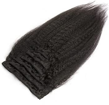 Kinky straight clip-in extensions are made from 100% human hair and provide a sleek, straight look for those with naturally curly or wavy hair. They are designed to add volume and length while maintaining a natural-looking straight style with a touch of texture. The clip-in design makes them easy to install and remove, and they can be styled and customized to match any desired look. 2-3 sets recommended